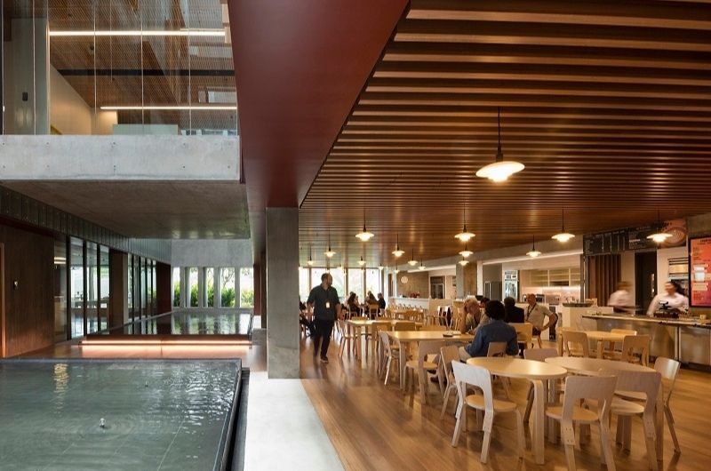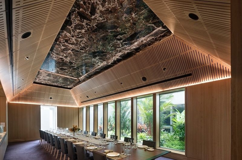 Many of the materials used within the embassy were Australian sourced including Australian timber Blackbutt, Spotted Gum and marble from the Pilbara region WA and North Queensland.