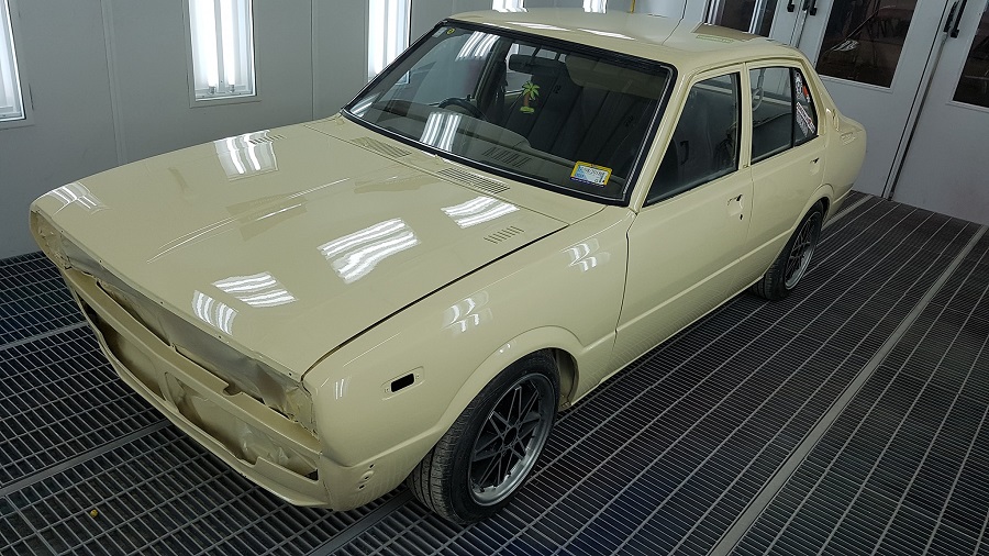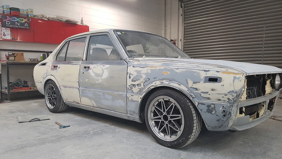 This 1978 Toyota Corolla 13B Rotary came in worse for wear. Every panel was dented or rusted resulting in a lot of time blocking and welding prior to painting. Miro Street Panel Beaters used Mirotone’s range of automotive premium grade coating paint to bring it back to its former glory. MIROTHANE PU 5610 Pigmented Topcoat in a high gloss finish was used for its superior coverage and excellent durability on a wide variety of  metal articles used in the automotive market, truck body building, camper vans and waste recycling trucks.